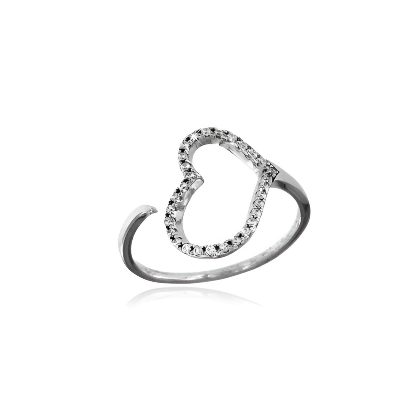 Anello cuore regolabile da donna in argento 925 imprziosito da zirconi.