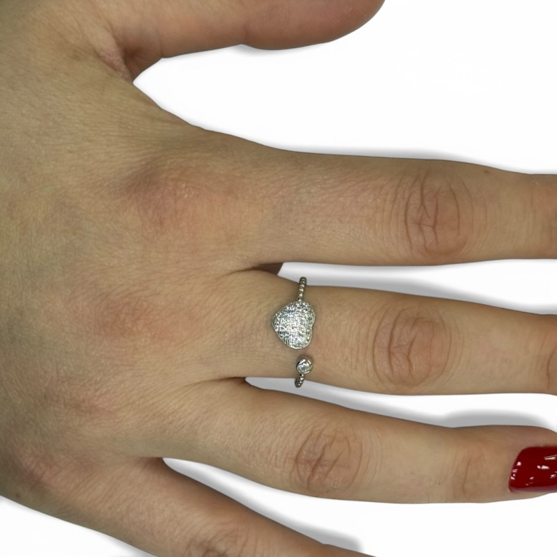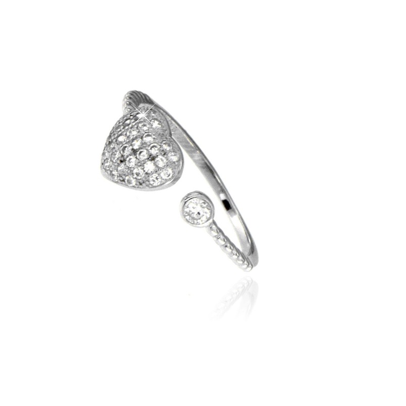 Anello da donna in argento 925 con cuoricino centrale zirconato. Misura 14 regolabile
