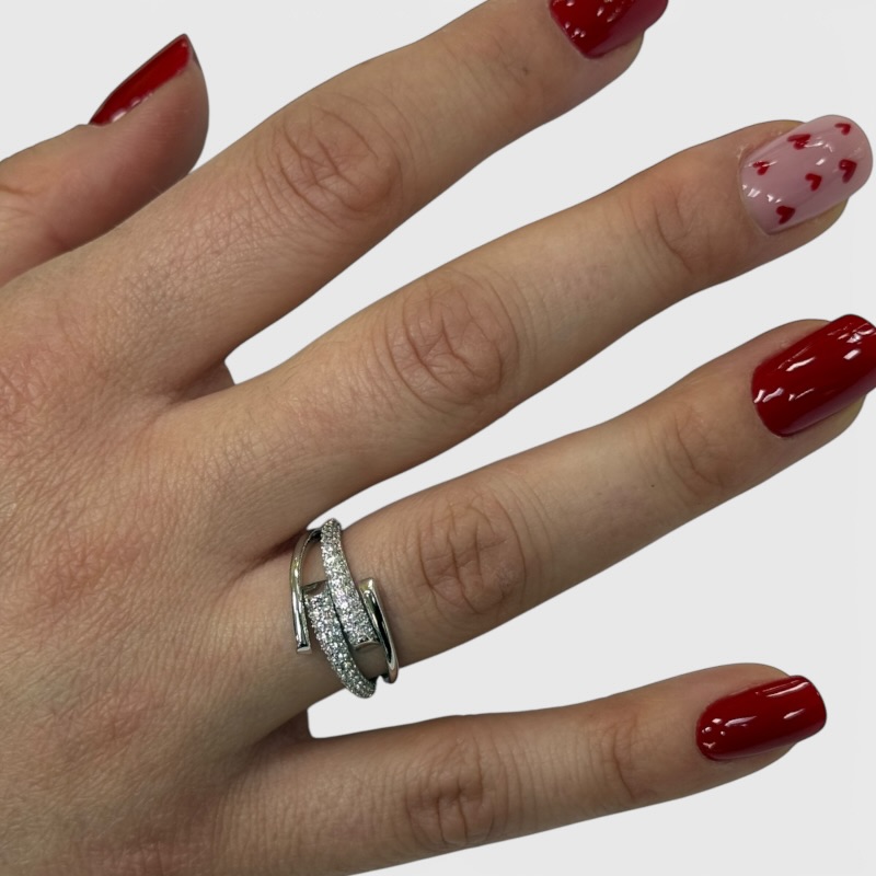 Anello da donna in argento 925 modello fantasy impreziosito da zirconi. Misura regolabile