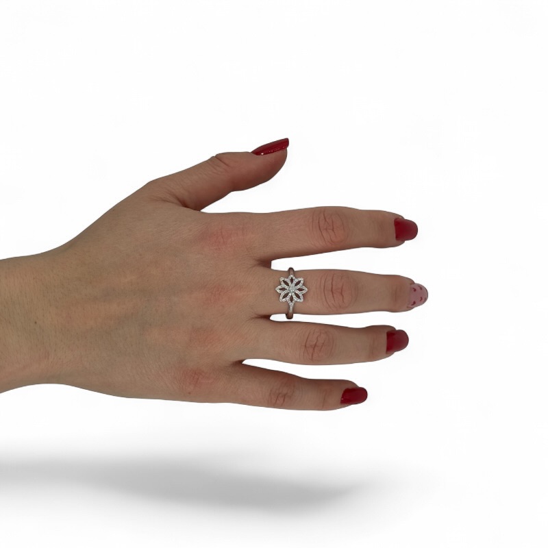 Anello da donna in argento 925 impreziosito da fiore centrale zirconato. Miura 14-15 regolabile.