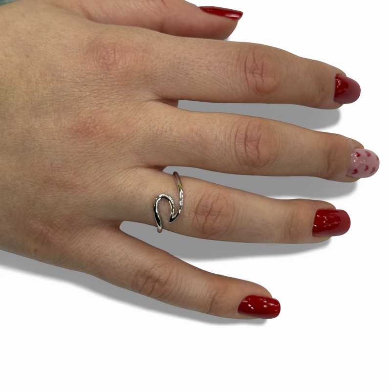 Anello da donna in argento 925 con sagoma di onda liscia. Misure 12 e 16 regolabili.