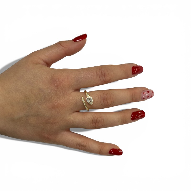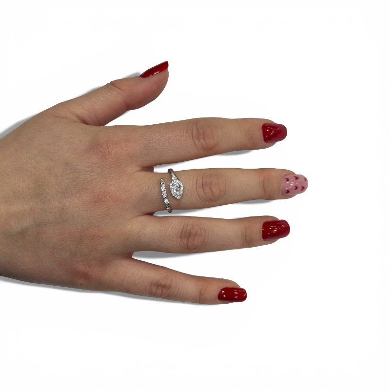 Anello da donna in argento 925 a forma di serpente con zircone bianco. Misura 14 regolabile