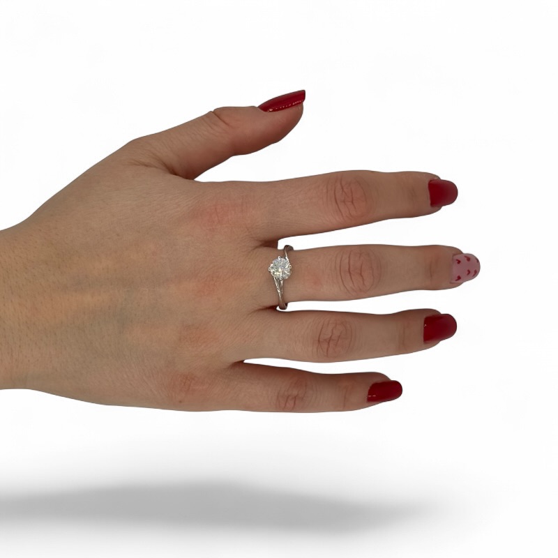 Anello da donna in argento 925 modello solitario con moissanite da 6,5 mm .
