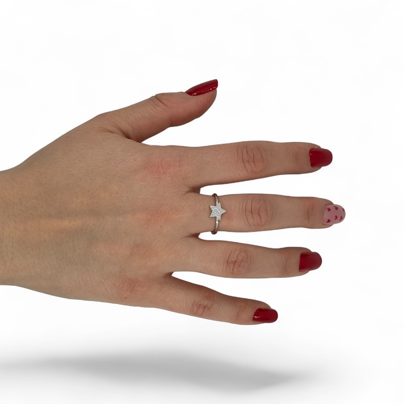 Anello da donna in argento 925 con stellina centrale zirconata . Misura regolabile