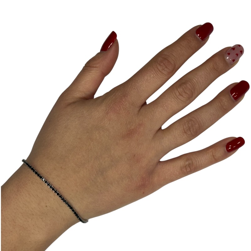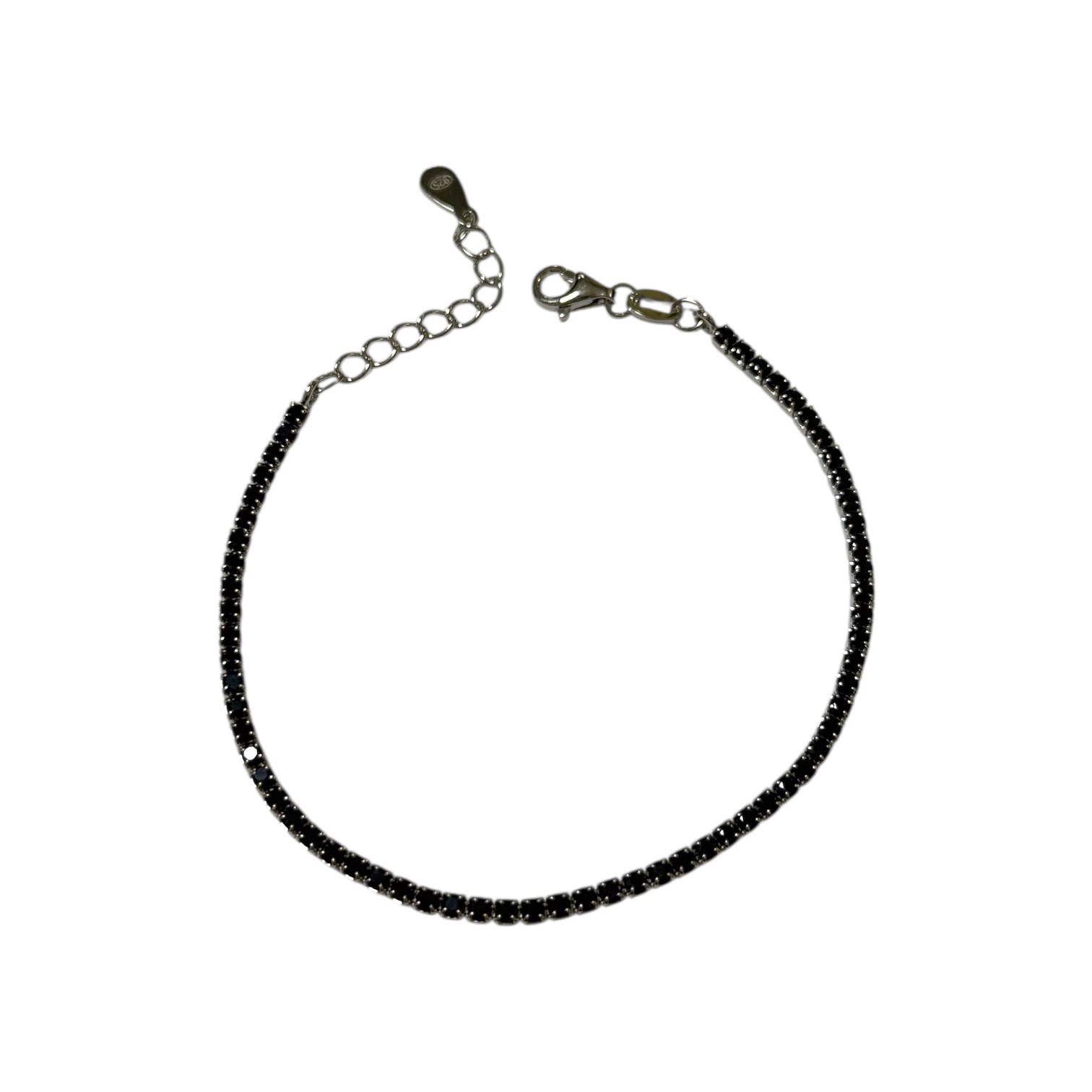 Bracciale da donna in argento 925 modello tennis con zirconi neri da 2 mm. Lunghezza 16 cm + 3 cm di allungo . Chiusura a moschettone regolabile