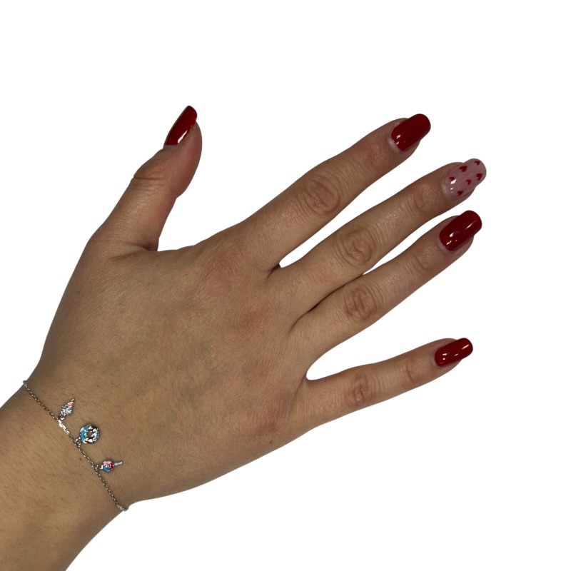 Collana da bambina in argento 925 con pendenti a forma di gelato e ciambelle smaltate. Chiusura a moschettone regolabile. lunghezza 16cm + 3 di allungo