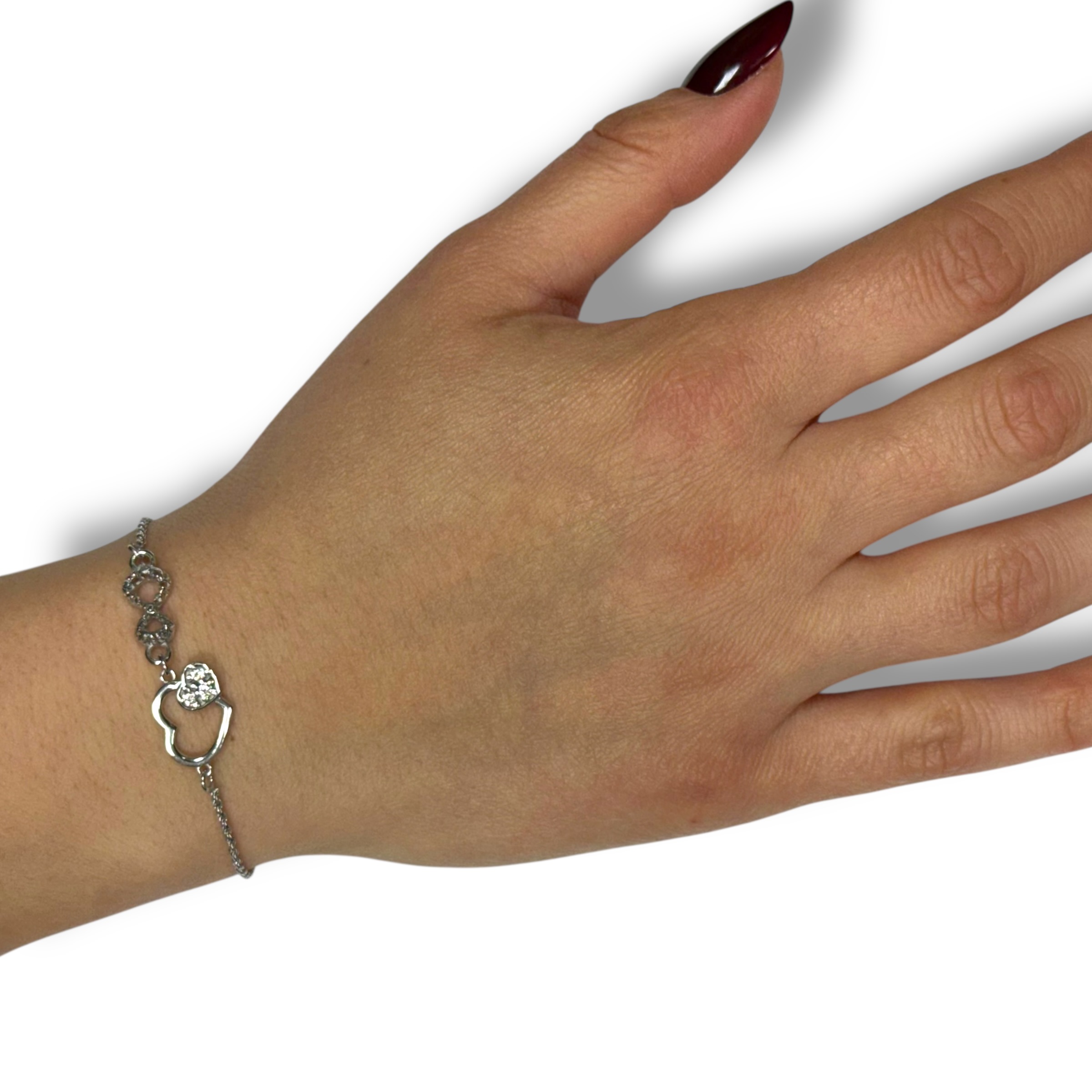 Bracciale da donna in argento 925 maglia funette con cuore e infinito. Chiusura a moschettone regolabile. Misura 17 cm + 3 cm di allungo.