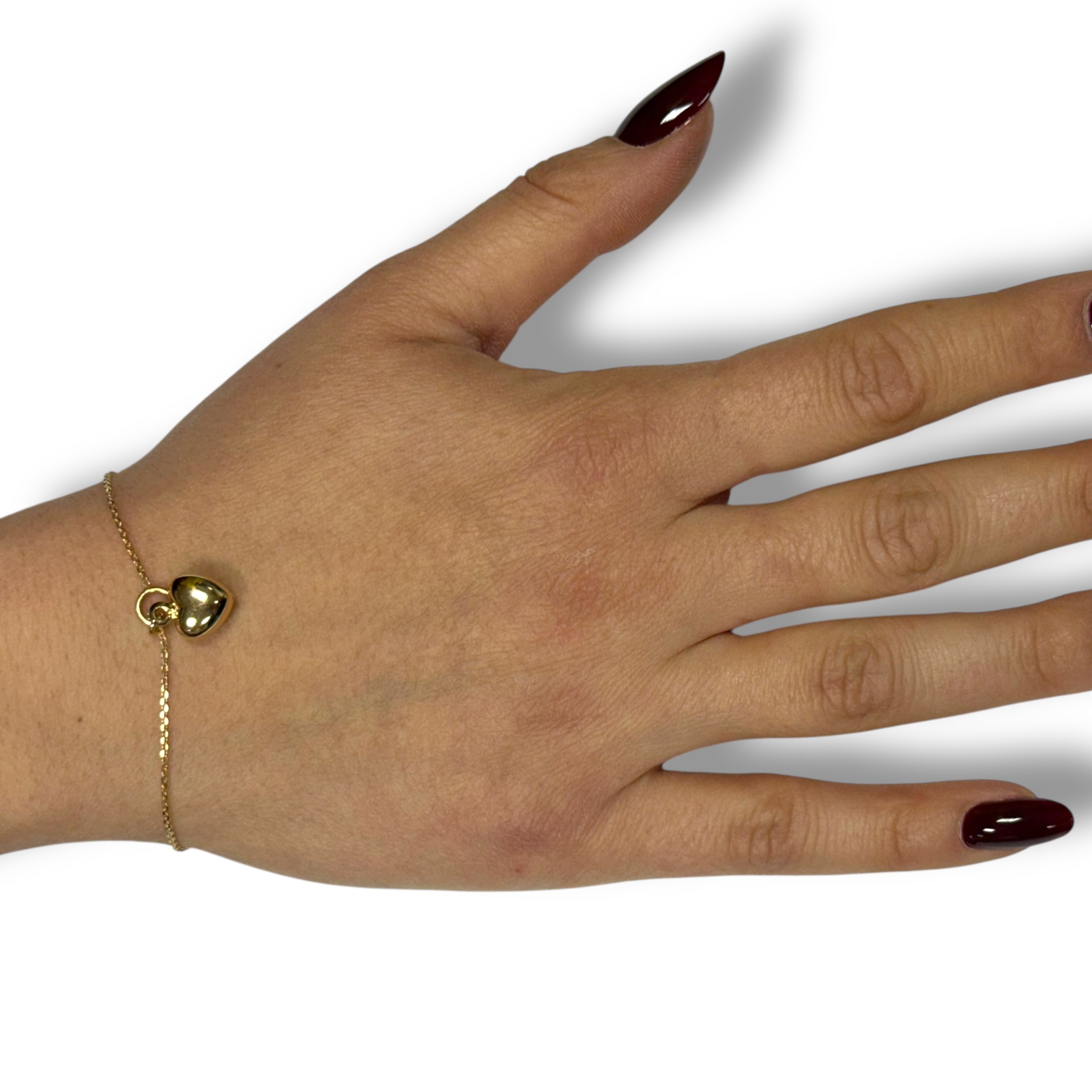 Bracciale da donna in argento 925 colore gold con cuoricino colore bombato pendente. Chiusura a moschettone regolabile
