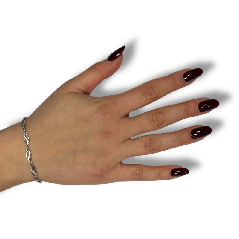 Bracciale da donna in argento 925 con intrecci zirconati. Lunghezza 16 cm + 3 cm di allungo. Chiusura a moschettone regolabile
