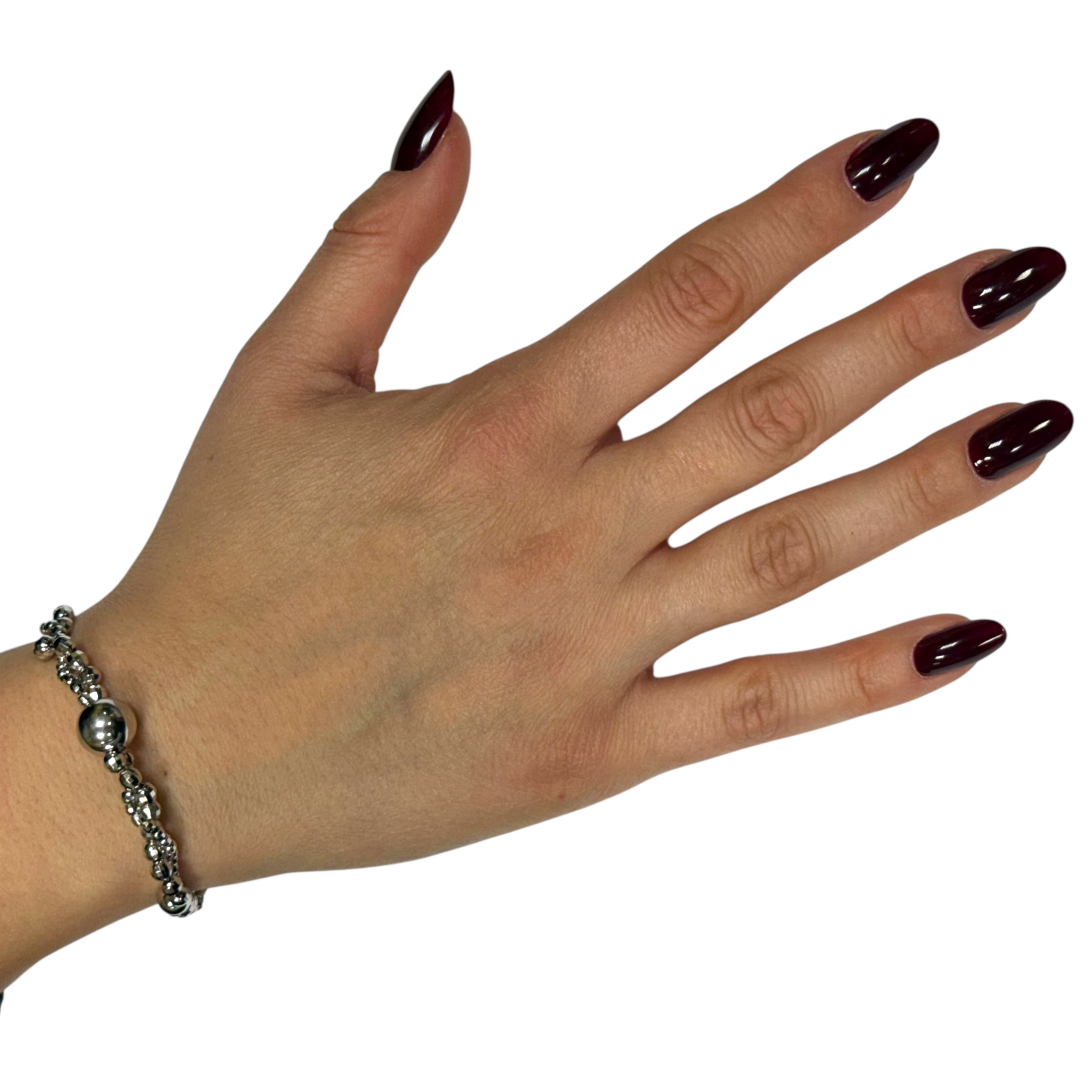 Bracciale in argento 925 milleluci con sfera cenrale lucida. Lunghezza 16 cm + 3 cm di allungo. Chiusura a moschettone regolabile