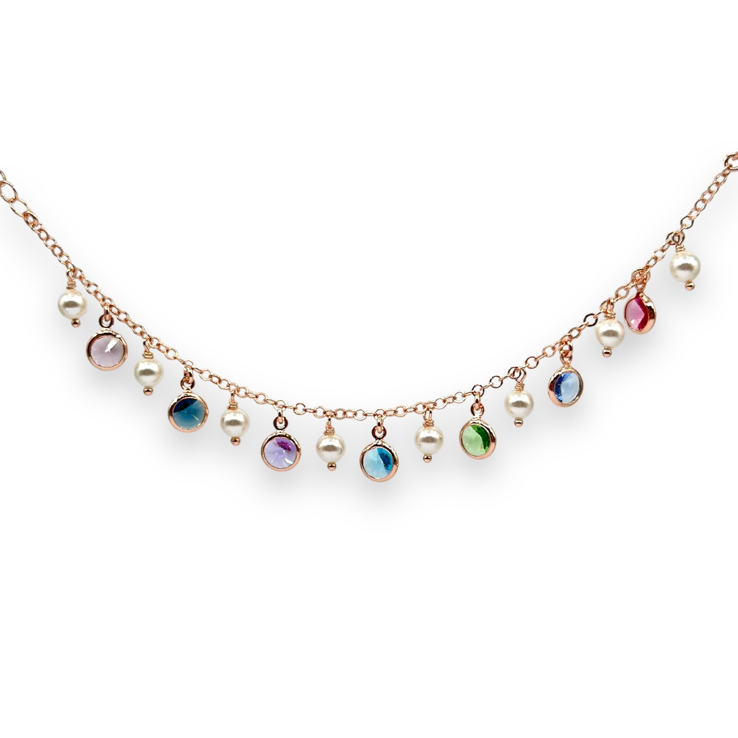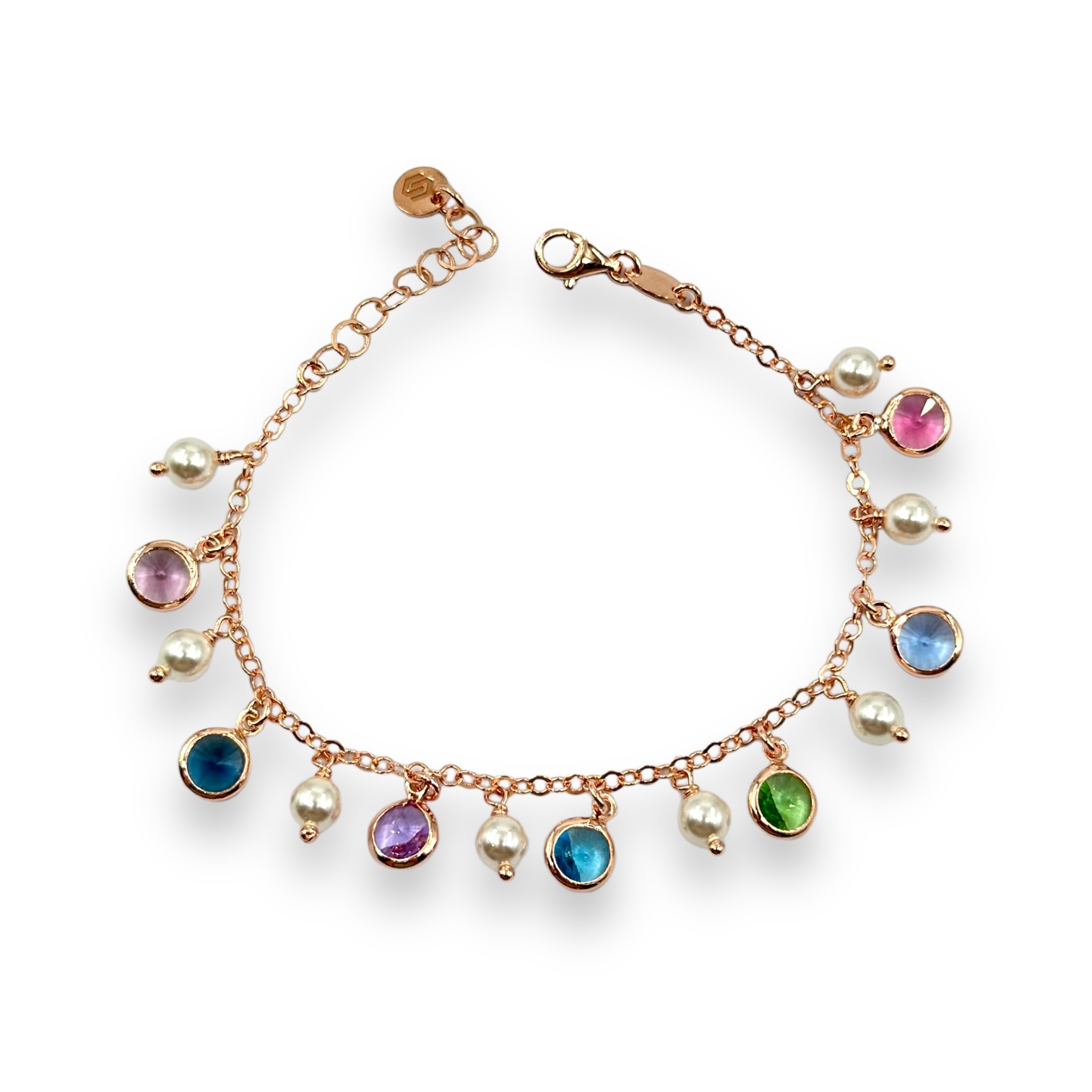 Braccialeda donna in argento 925 con catena veneziana alternata con perline e swarovski colorati , lunghezza 16 cm + 3 cm di allungo