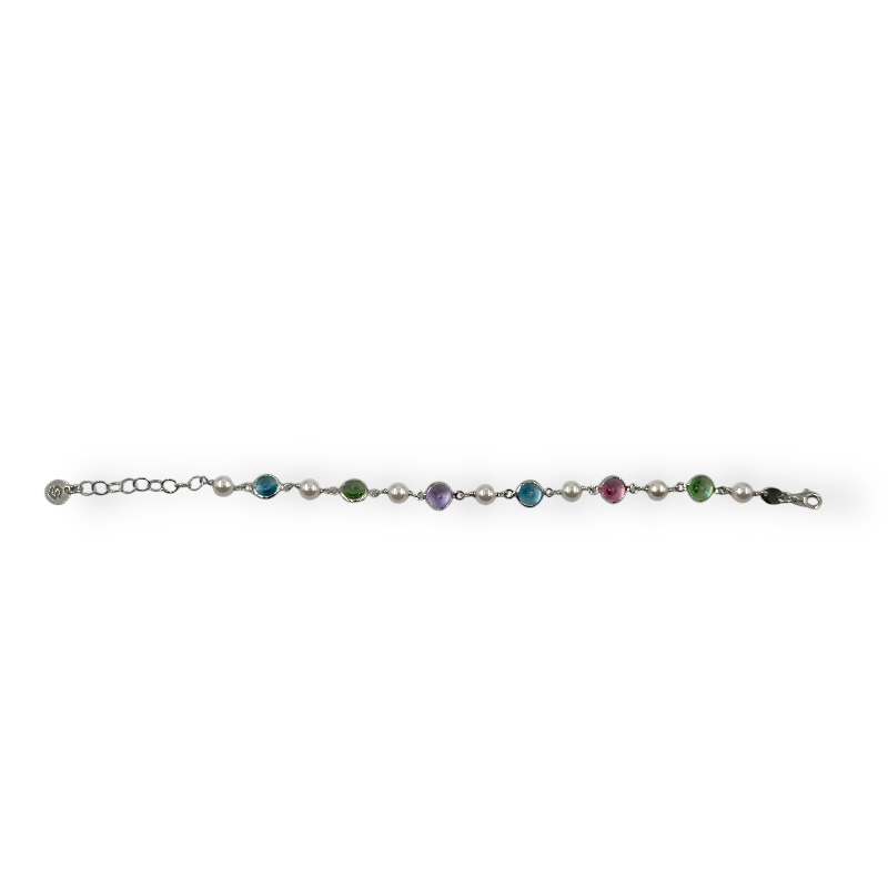 Bracciale da donna in argento 925 con catena veneziana alternata con perline e swarovski colorati , lunghezza 16 cm + 3 cm di allungo