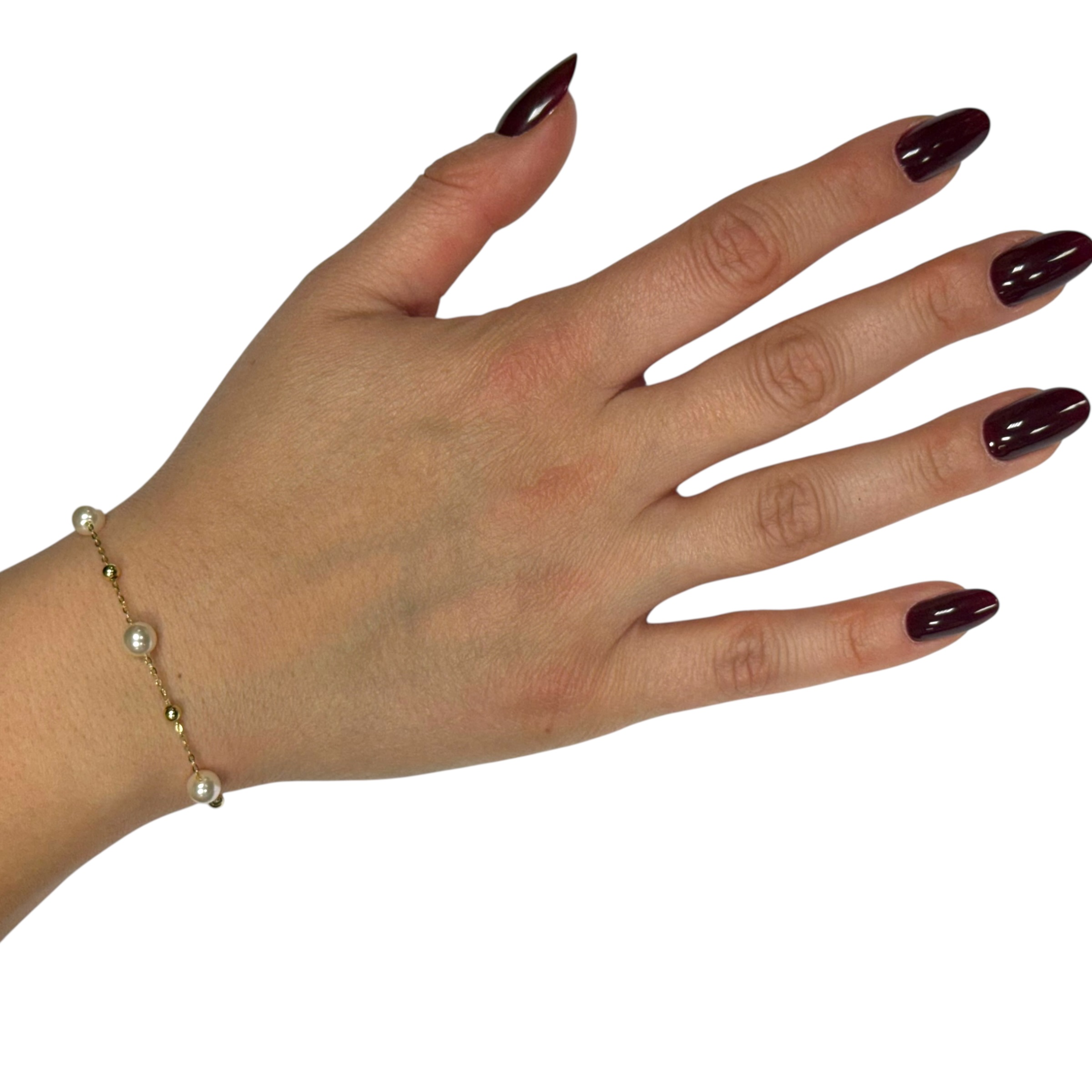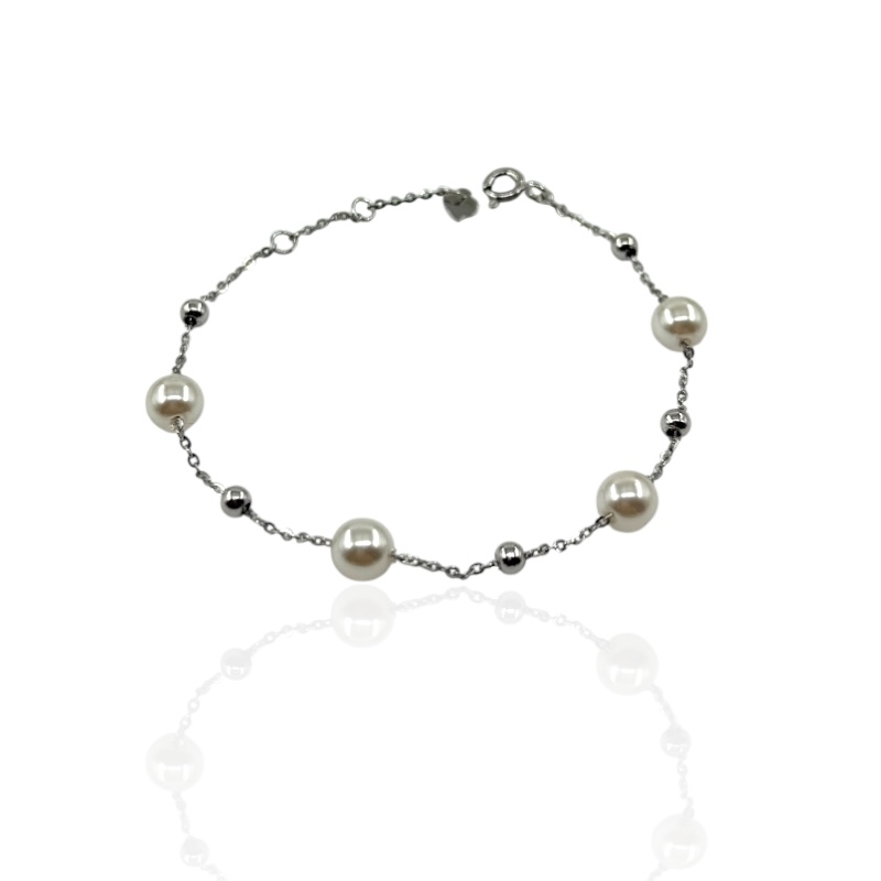 Bracciale da donna in argento 925 con perline e sfere lucide. Chiusura con moschettone regolabile