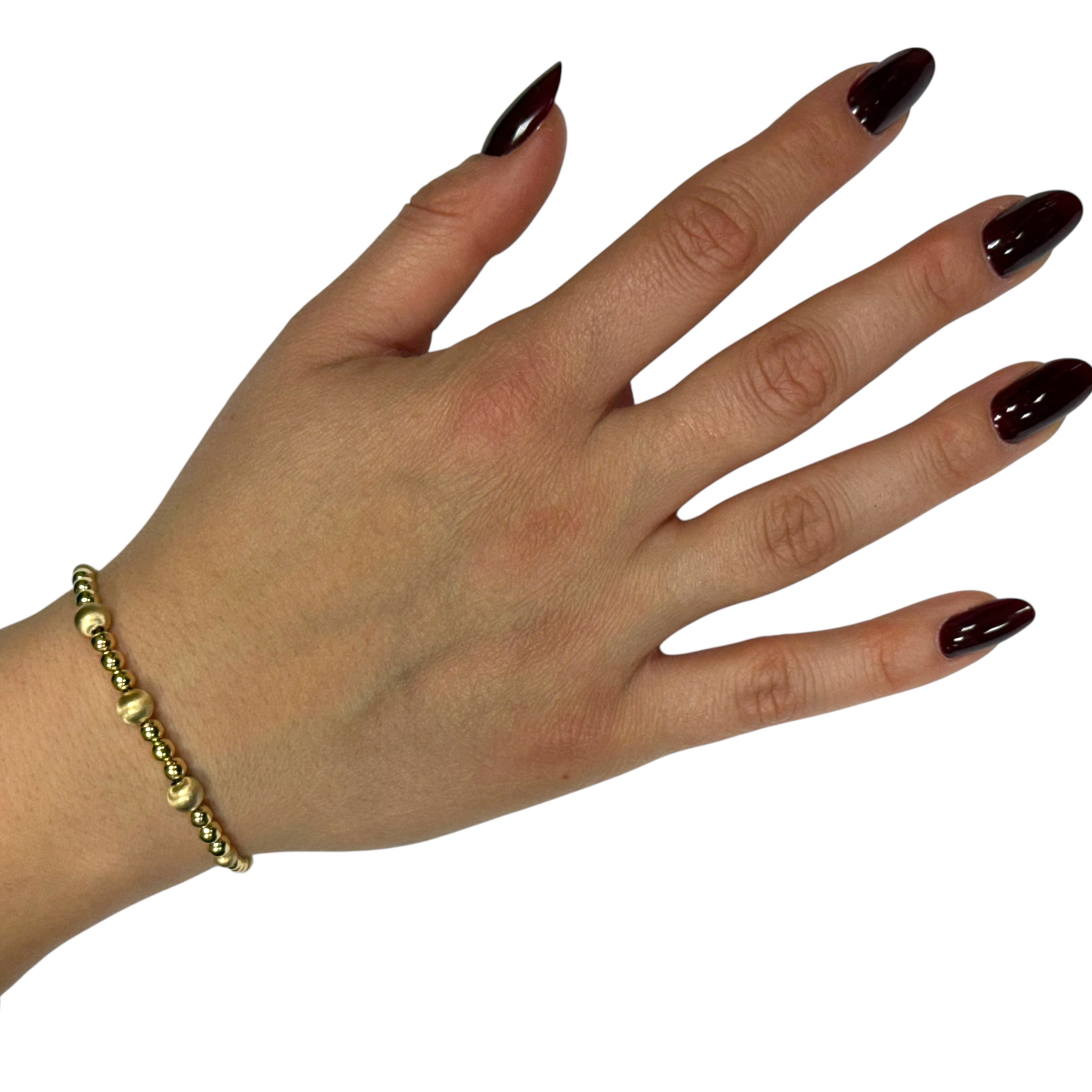 Bracciale in argento 925 composto da sfere lucide e satinate di diversa grandezza che vanno a scalare. Lunghezza 16 cm + 3 cm di allungo. Chiusura a moschettone regolabile