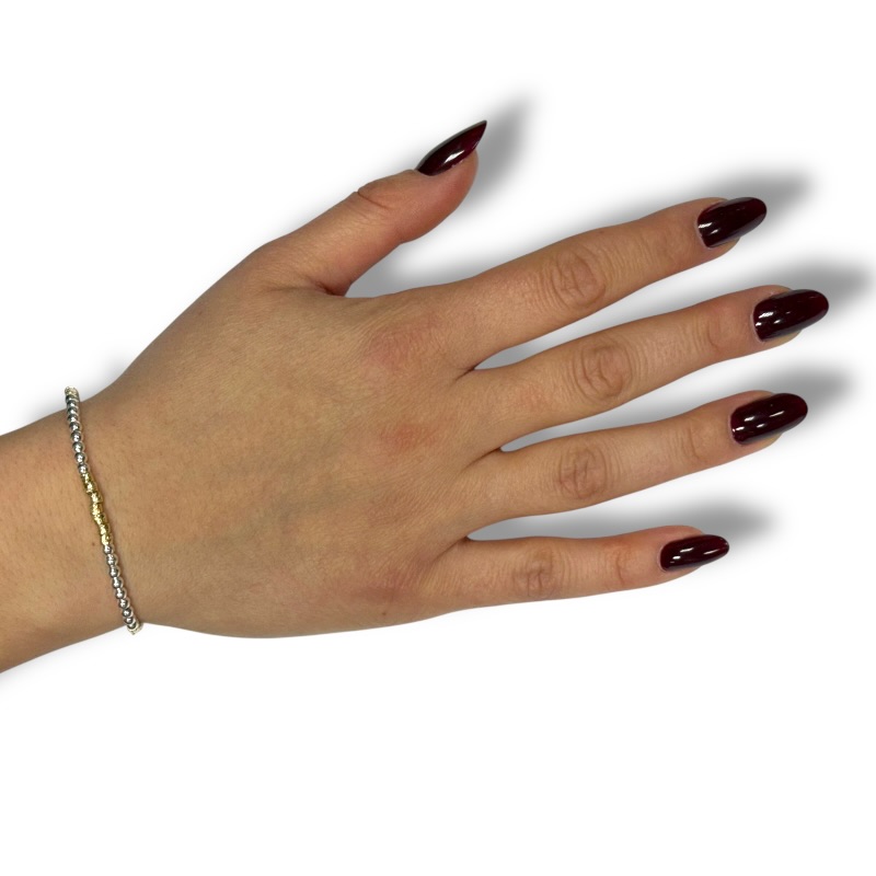 Bracciale da donna in argento 925 con sfere silver e pepite dorate Lunghezza 16 cm + 4 cm di allungo. Chiusura a moschettone regolabile