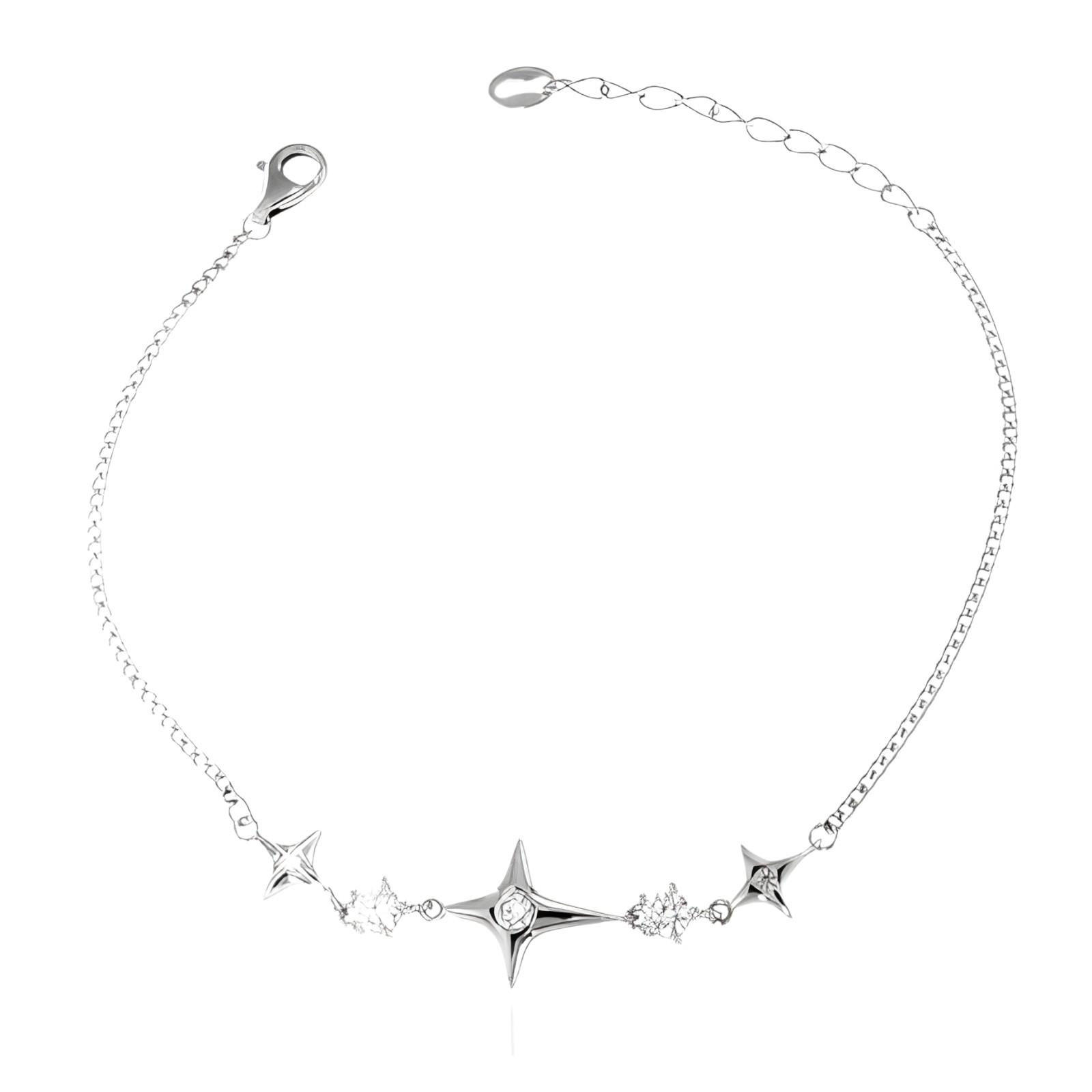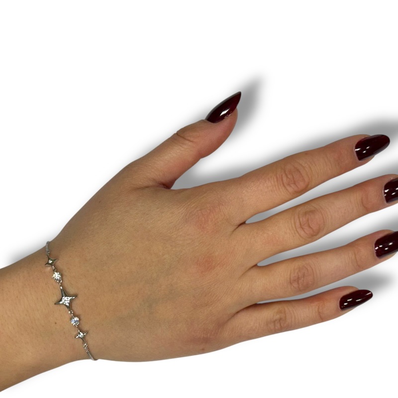 Bracciale da donna in argento 925 con stelle e zirconi. Chiusura a moschettone regolabile. Lunghezza: 17 cm + 3 cm di allungo