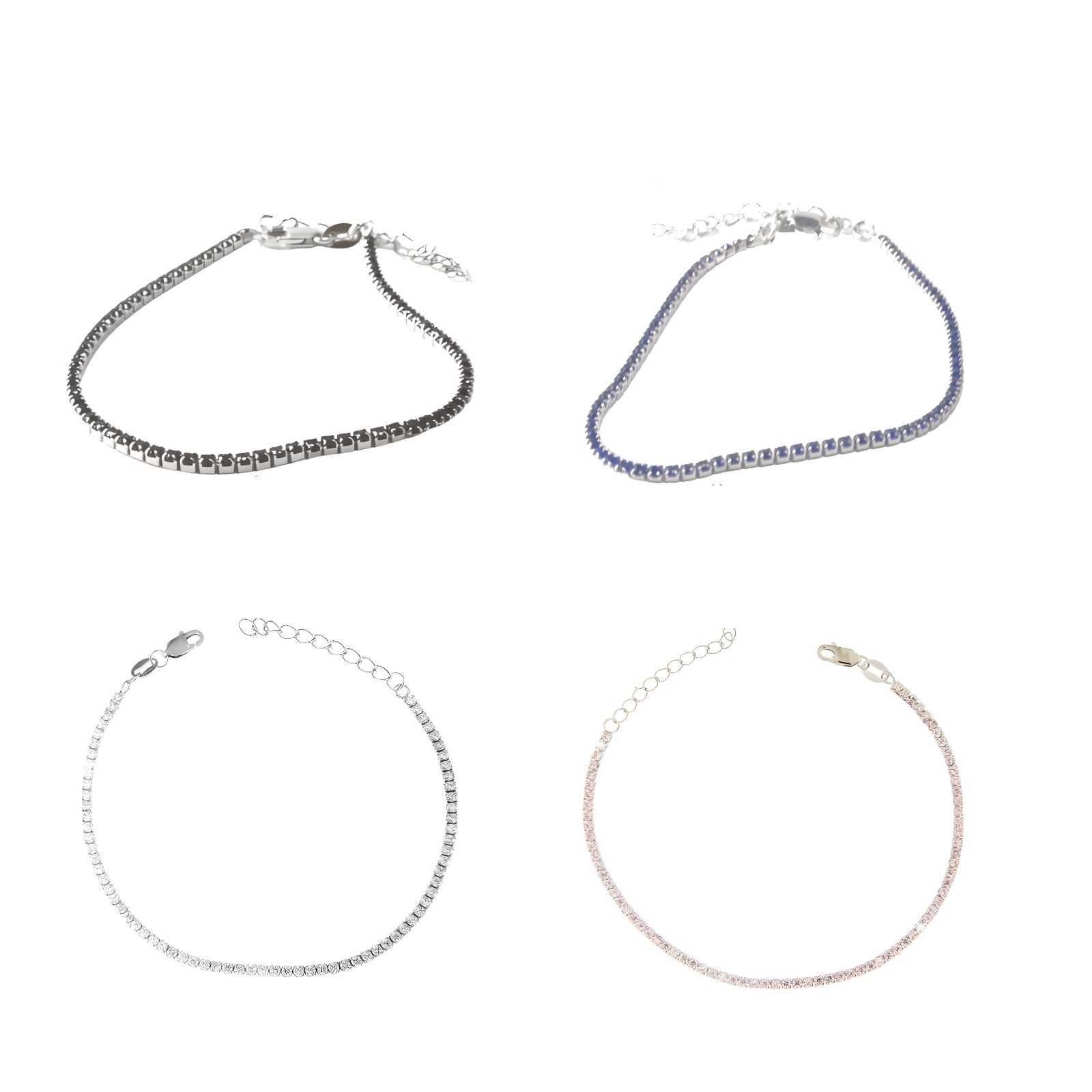 Bracciale da donna in argento 925 modello tennis 4 griffe 1,70 mm. Misura 16 cm + 3 cm di allungo. Chiusura a moschettone regolabile .