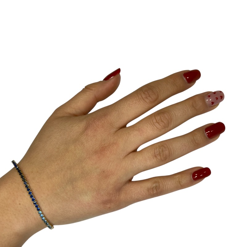 Bracciale da donna in argento 925 modello tennis con zirconi da 1,75 mm sfumati. Lunghezza 17 cm + 3 cm di allungo. Chiusura a moschettone regolabile