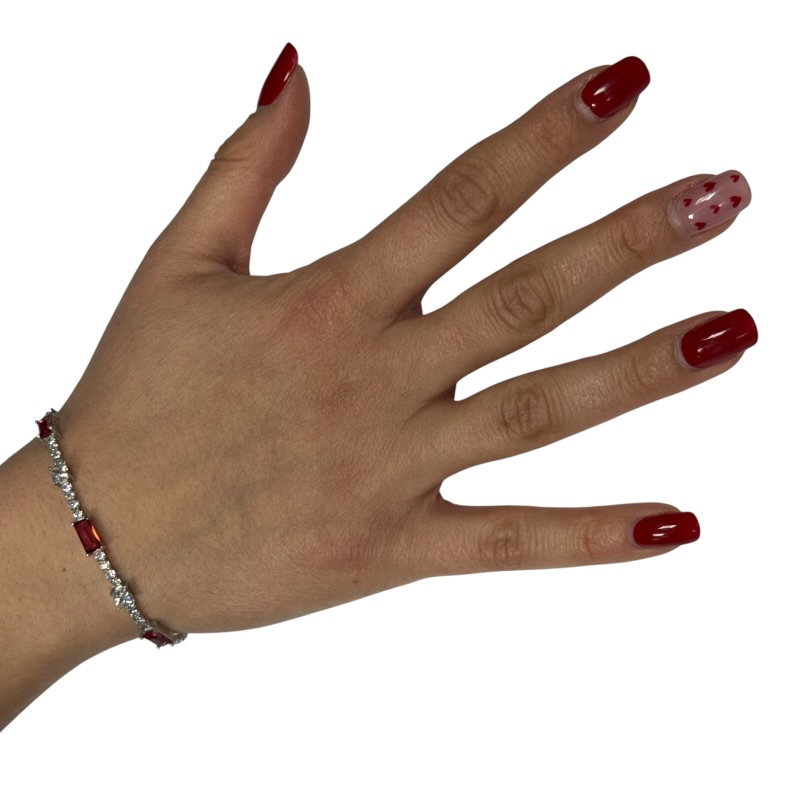 Bracciale da donna in argento 925 modello tennis con zirconi rettangolari e quadrati. Lunghezza 16 cm + 3 cm di allungo. Chiusura a moschettone regolabile