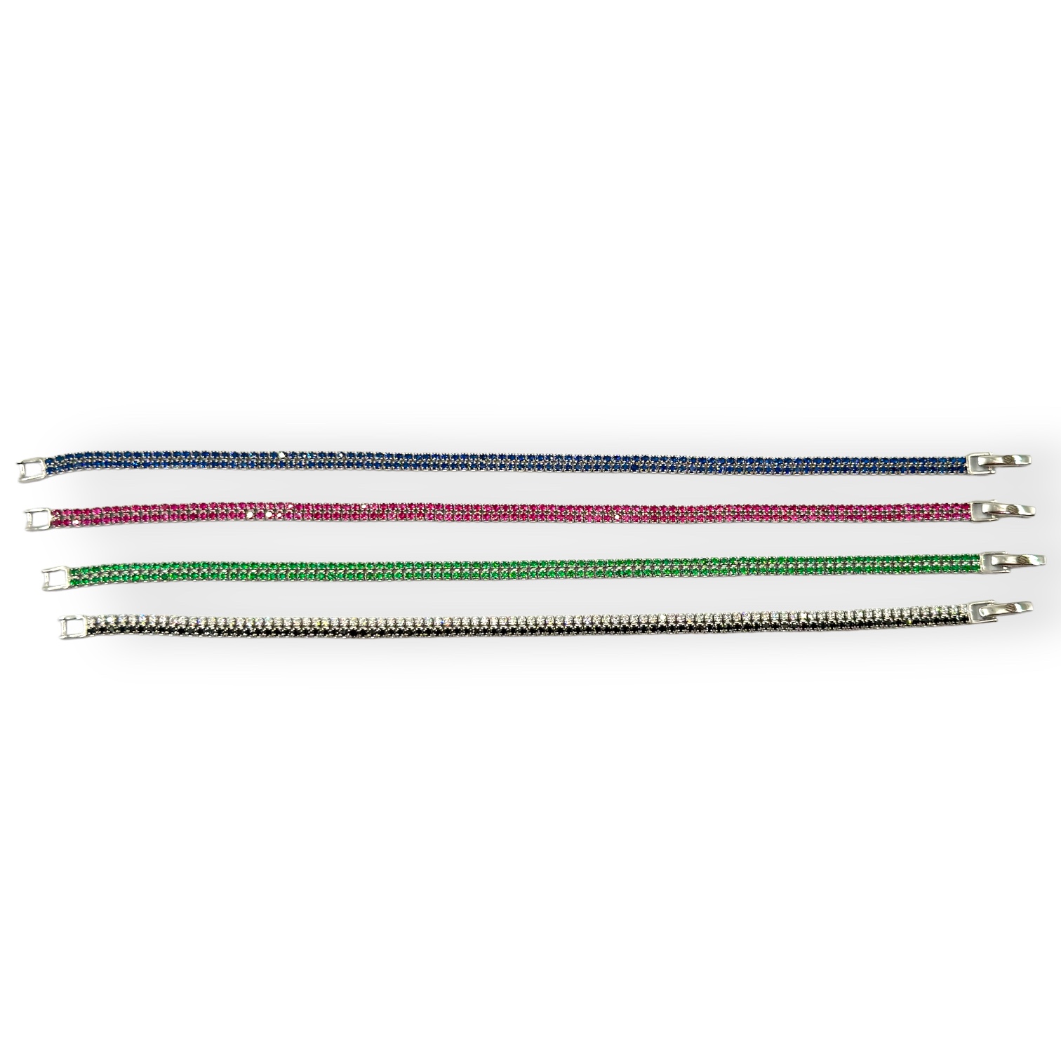 Bracciale da donna in argento 925 modello tennis con doppio giro di pietre. Chiusura a scatto. Misura 17,5 cm compresa la chiusura .
