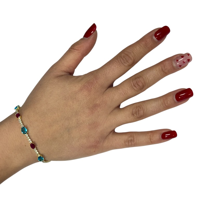 Bracciale in argento 925 maglia tennis con zirconi ovali. Lunghezza 16 cm + 3 cm di allungo. Chiusura a moschettone regolabile