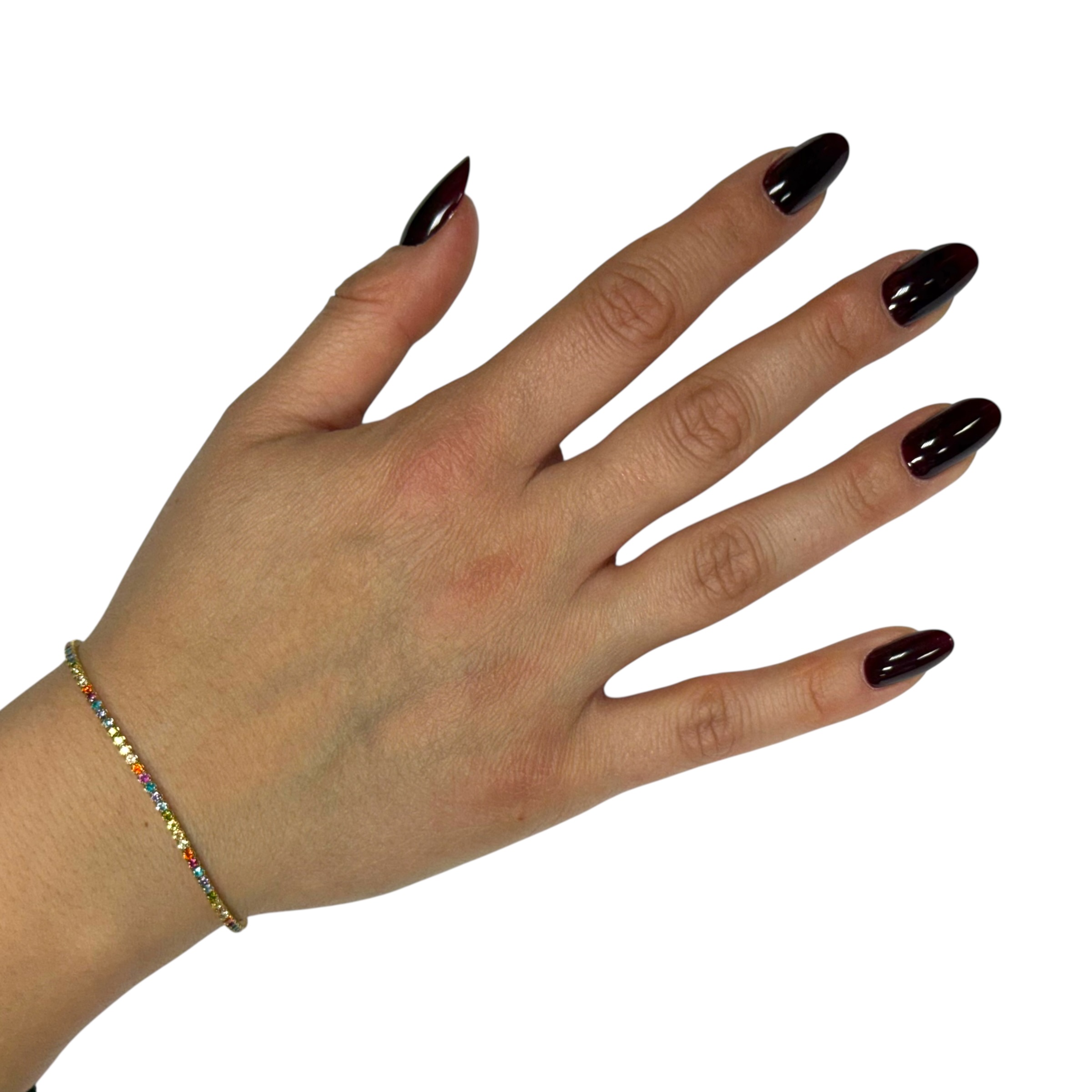 Bracciale da donna in argento 925 modello tennis 4 griffe con zirconi multicolor da 1,70mm. misura regolabile 16