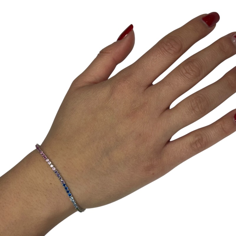 Bracciale Tennis 4 griffe in argento 925, con zirconi multicolor, lunghezza: 17 cm spessore 3 cm