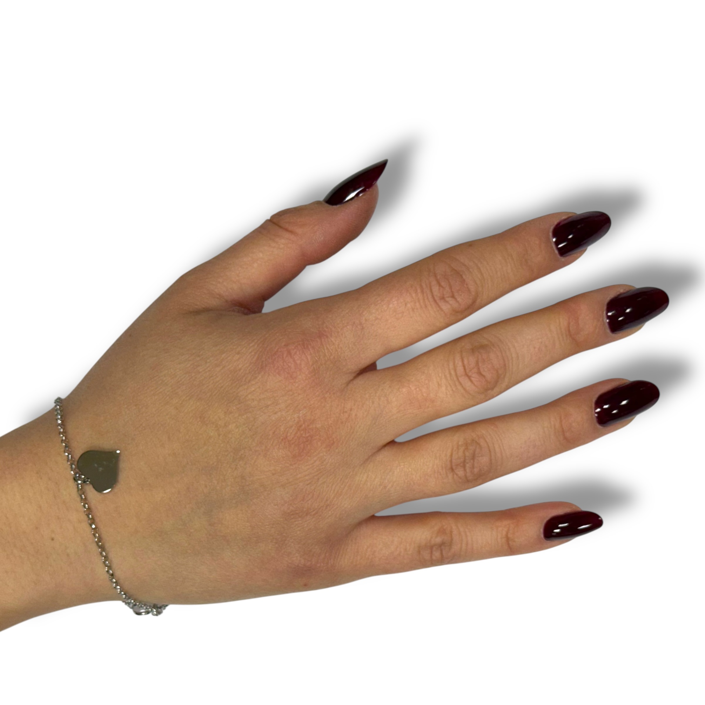 Bracciale da donna in argento 925 composto da tre cuori lucidi pendenti. Chiusura a moschettone regolabile. Misura 17 cm + 3 cm di allungo.