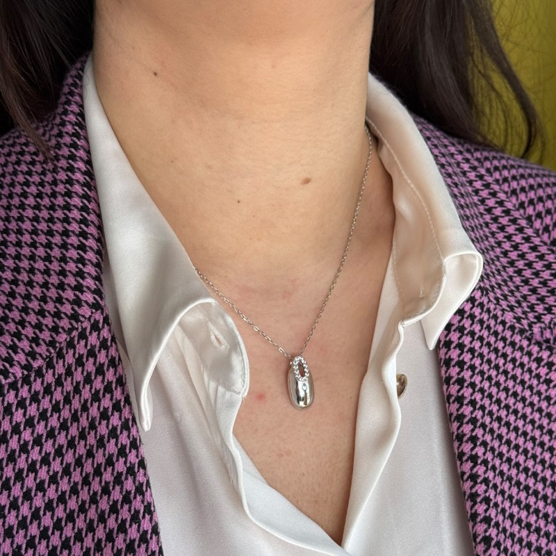 Collana da donna in argento 925 con scarpetta da ballerina impreziosita di strass. Chiusura a moschettone regolabile