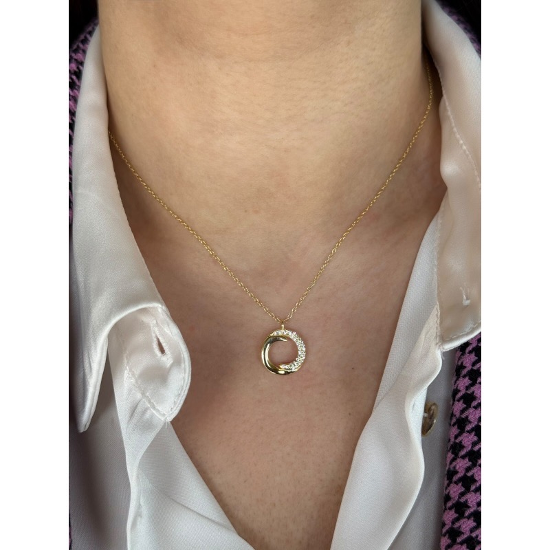 Collana da donna in argento 925 con pendente a forma di cerchio impreziosito da zirconi. Lunghezza 42 cm + 3 cm di allungo. Chiusura a moschettone regolabile