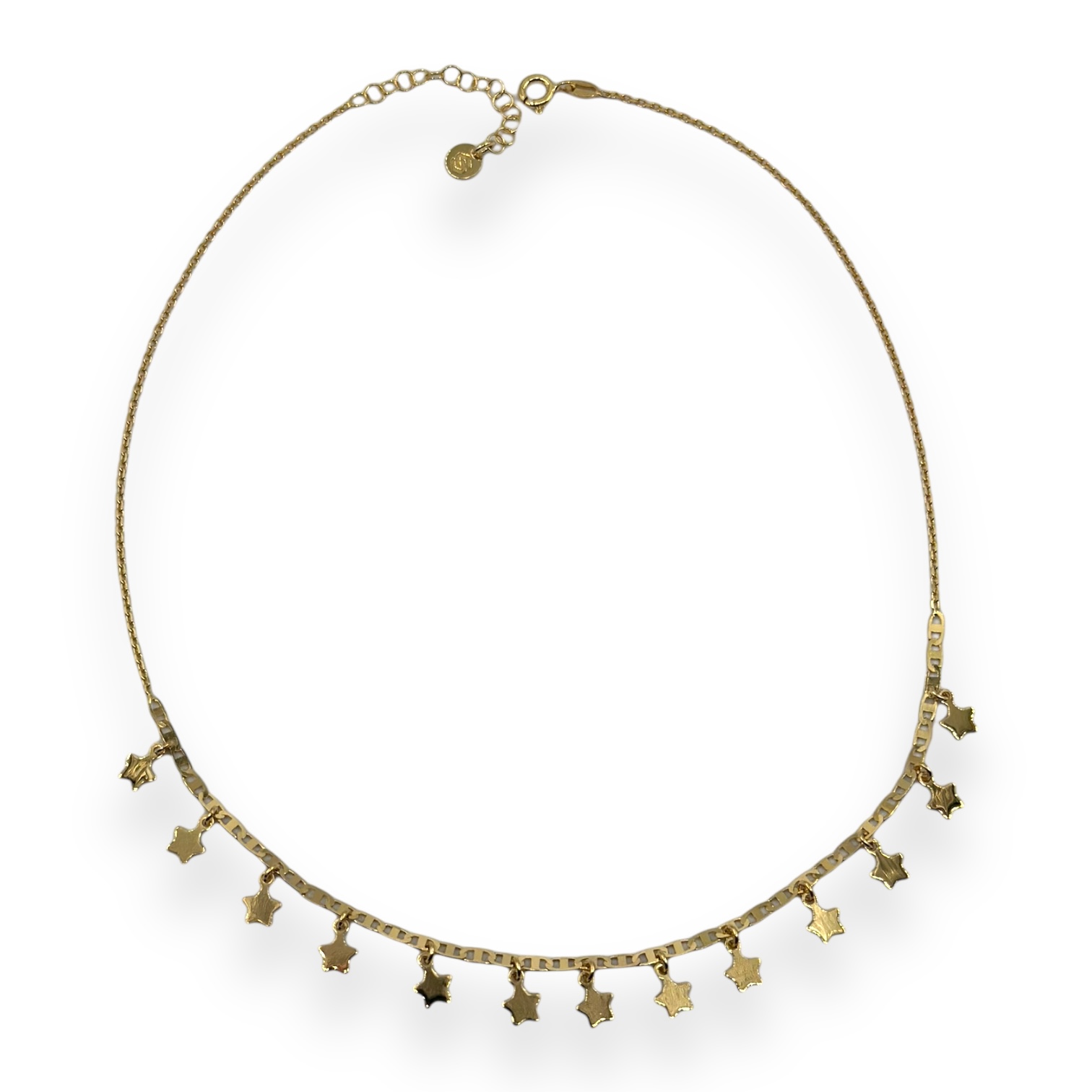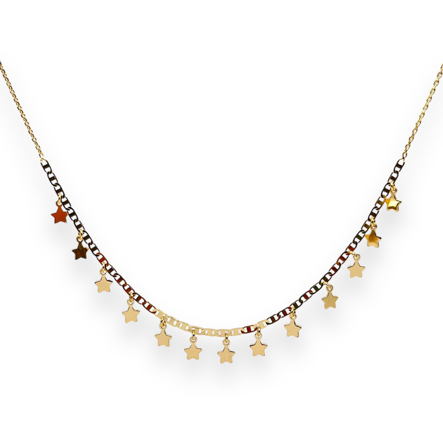 Collana da donna in argento 925 con catena e groumette, impreziosita da 13 stelline pendenti. lunga 40 cm + 4,5 cm di allungo, chiusura a molla regolabile