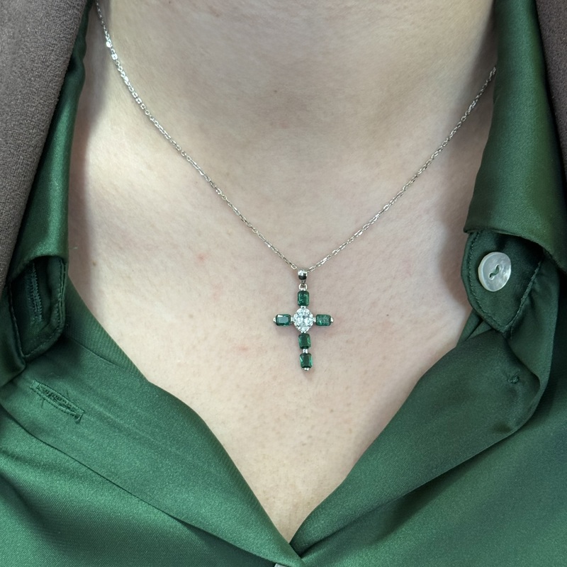 Collana da donna in argento 925 con croce pendente e baguette