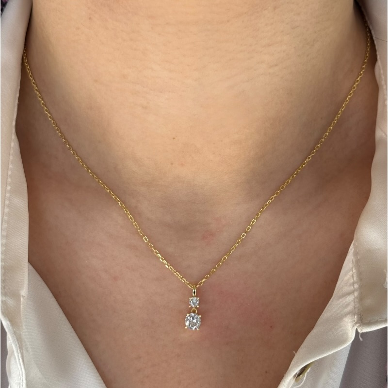 Collana da donna in argento 925 con doppio punto luce pendente, lunga 40 cm + 4,5 cm di allungo