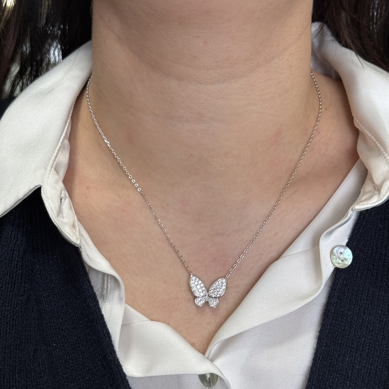 Collana da donna in argento 925 con pendente a forma di farfalla zirconata. chiusura a molla regolabile