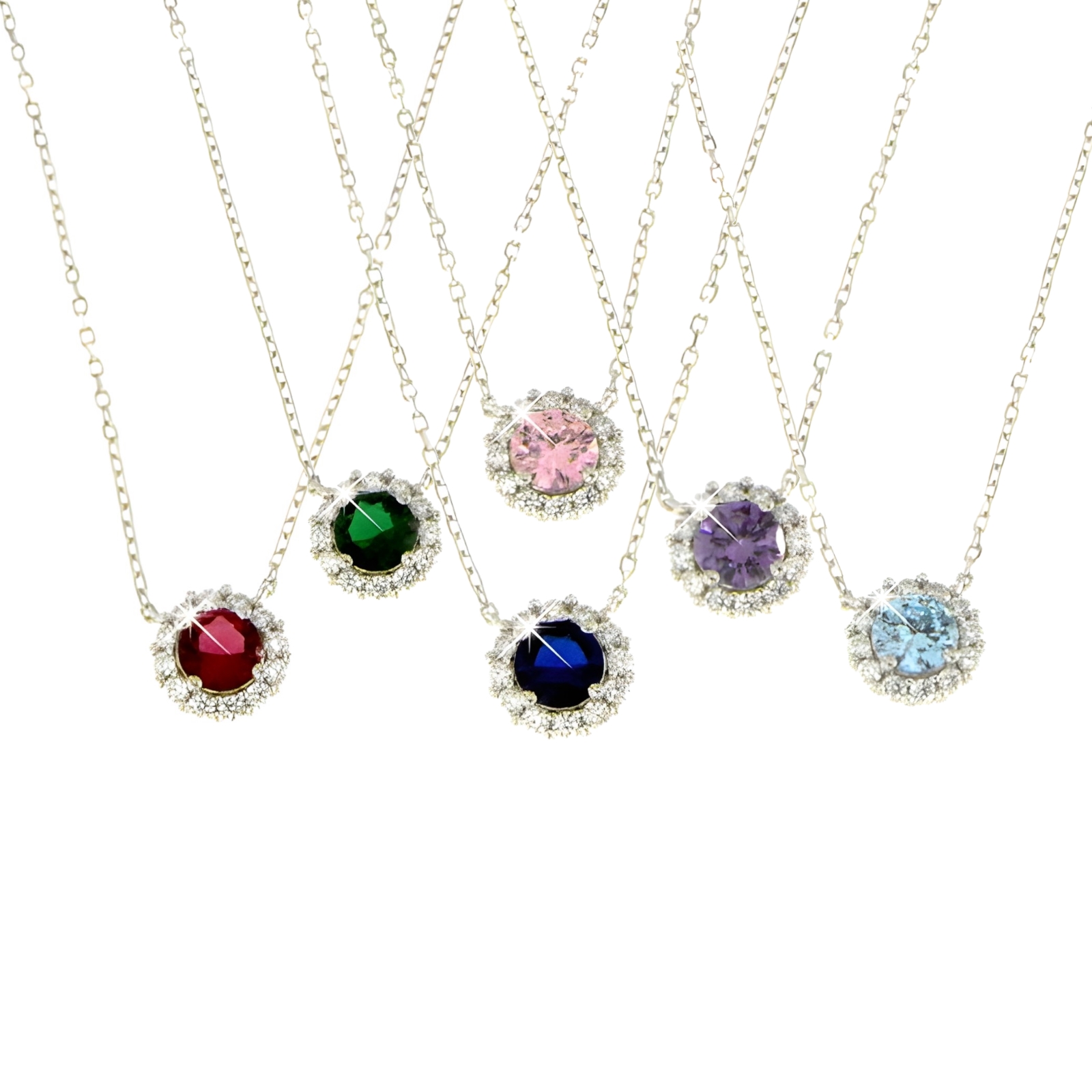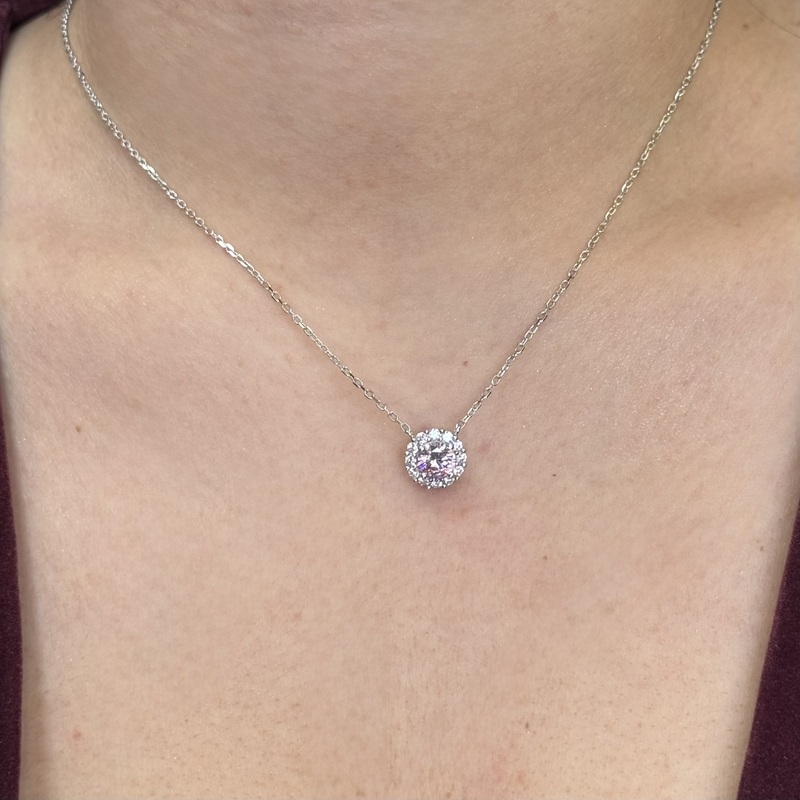 Collana da donna in argento 925 con pendente centrale tondo zirconato. Lunghezza 40 + 5 cm di allungo