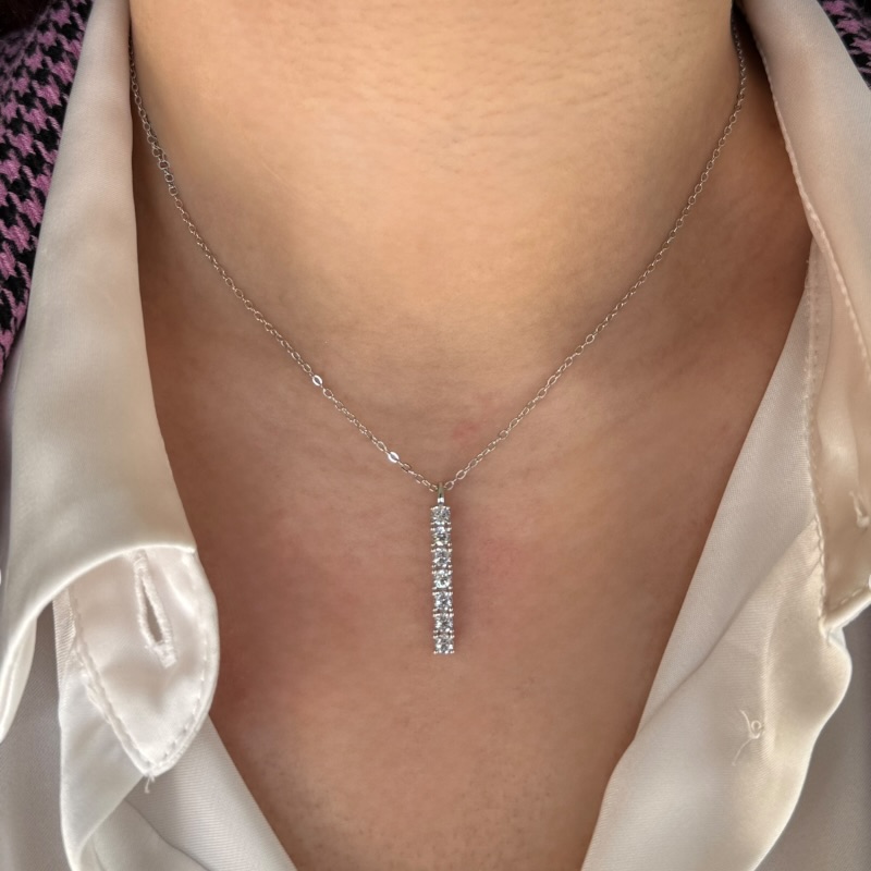 Collana da donna in argento 925 con pendente tennis da 7 zirconi , chiusura a molla regolabile