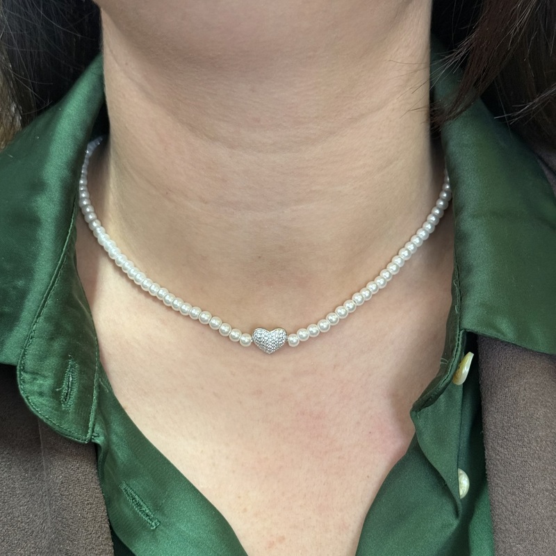 Collana perle con cuore zirconato