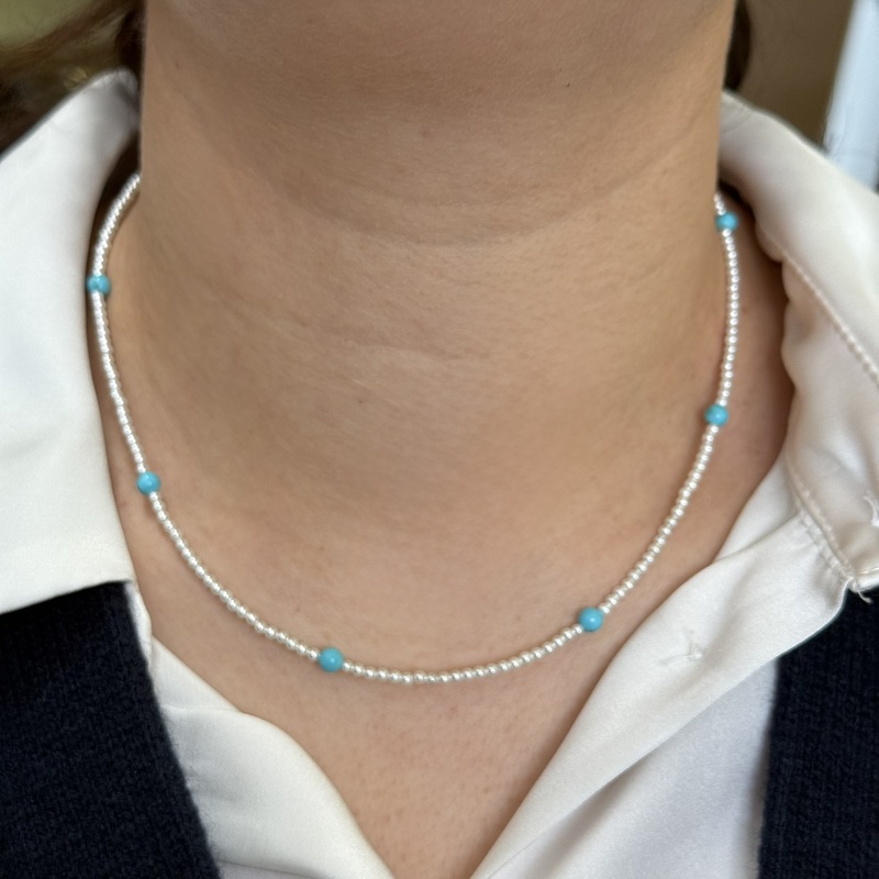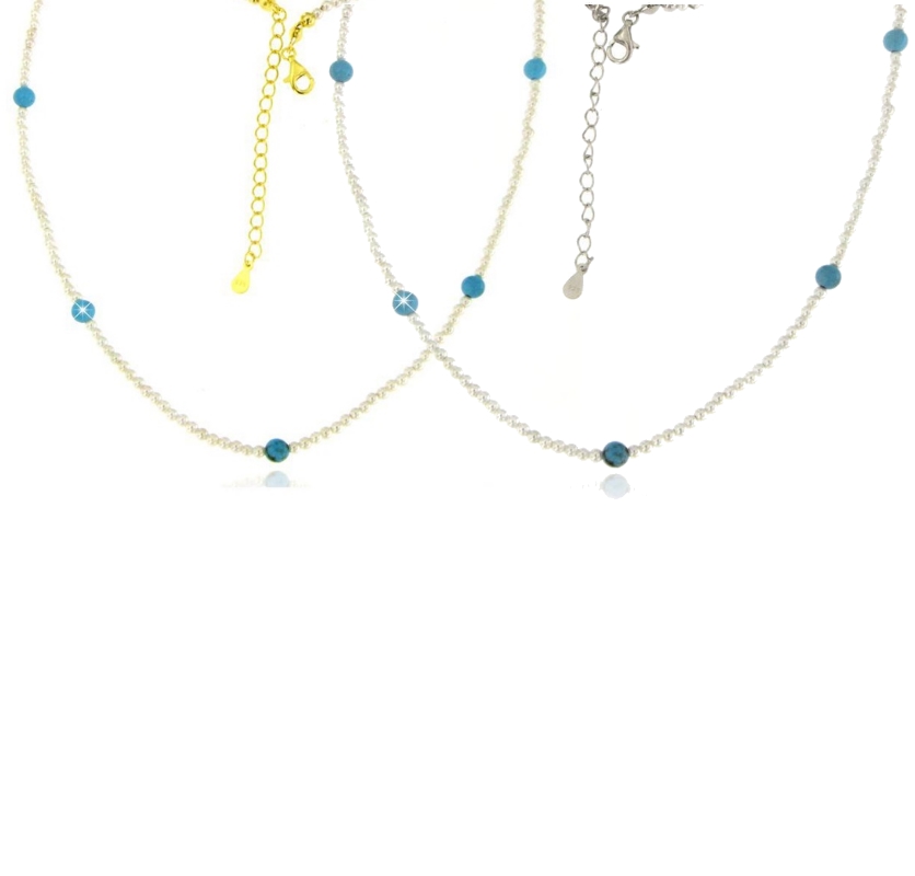Collana da donna in argento 925 con perline. Chiusura a moschettone regolabile