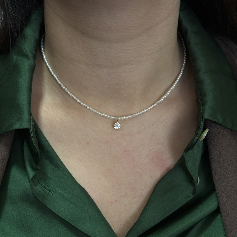 Collana da donna in argento 925 composto da perle da 2mm e punto luce da 5 mm . Chiusura a moschettone regolabile