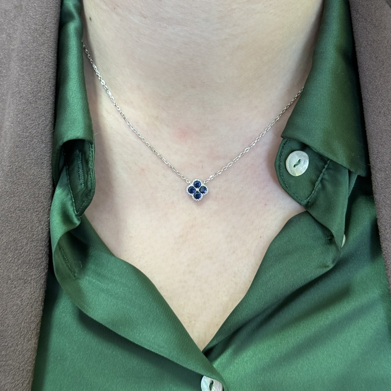 Collana quadrifoglio con zirconi blu