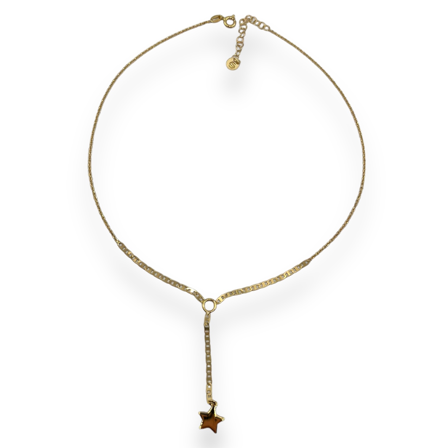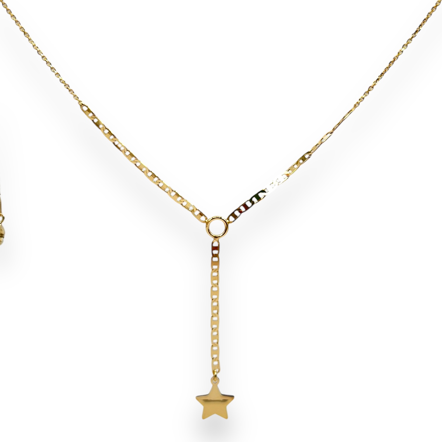 Collana da donna in argendo 925 con catena veneziana e maglia groumette, lunga 40 cm + 4,5 cm di allungo e pendente a forma di stella. Chiusura a molla regolabile