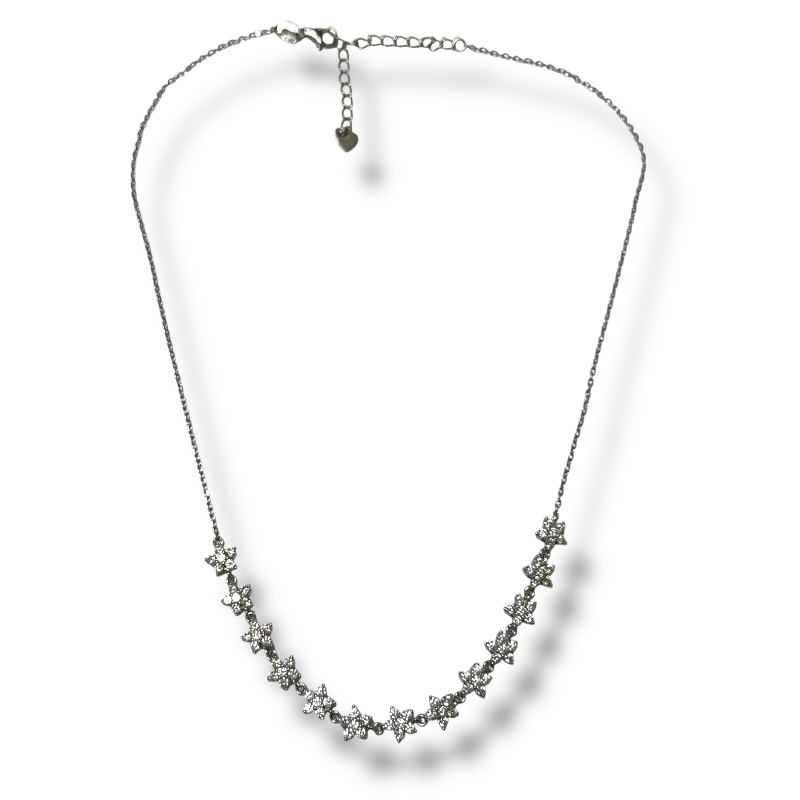Collana da donna in argento 925 con 13 stelline zirconate. Chiusura a moschettone regolabile