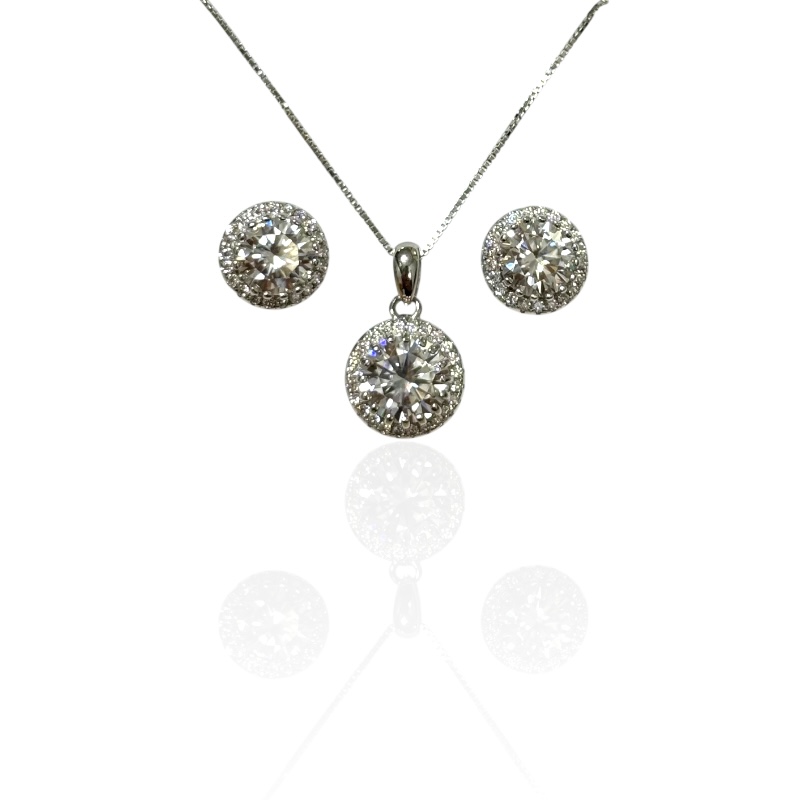 Completo da donna in argento 925, collana ed orecchini con moissanite da 7 mm