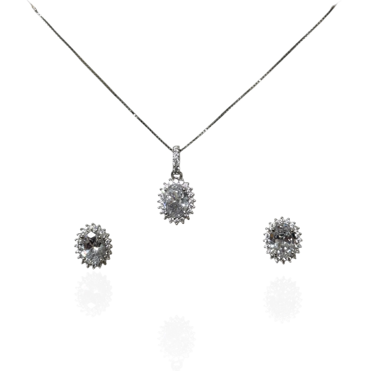 Completo da donna in argento 925 composto da pendente ed orecchini ovali impreziositi da zirconi.