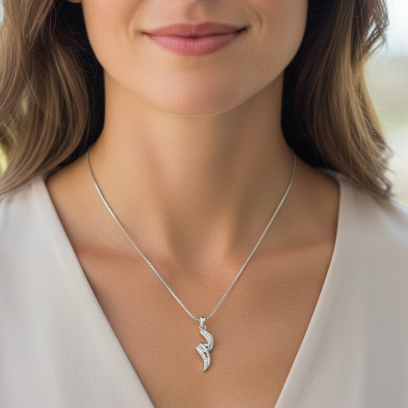 Collana da donna in argento 925 con forzatina e pendente zirconato. Chiusura a moschettone regolabile