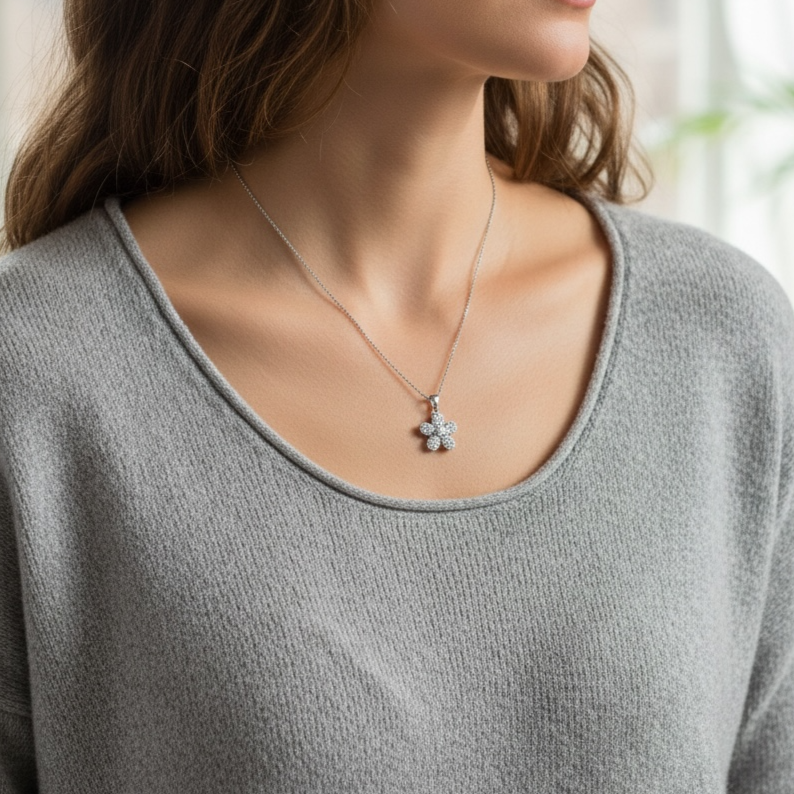 Collana da donna in argento 92 con pendente a forma di fiore impreziosito da zirconi
