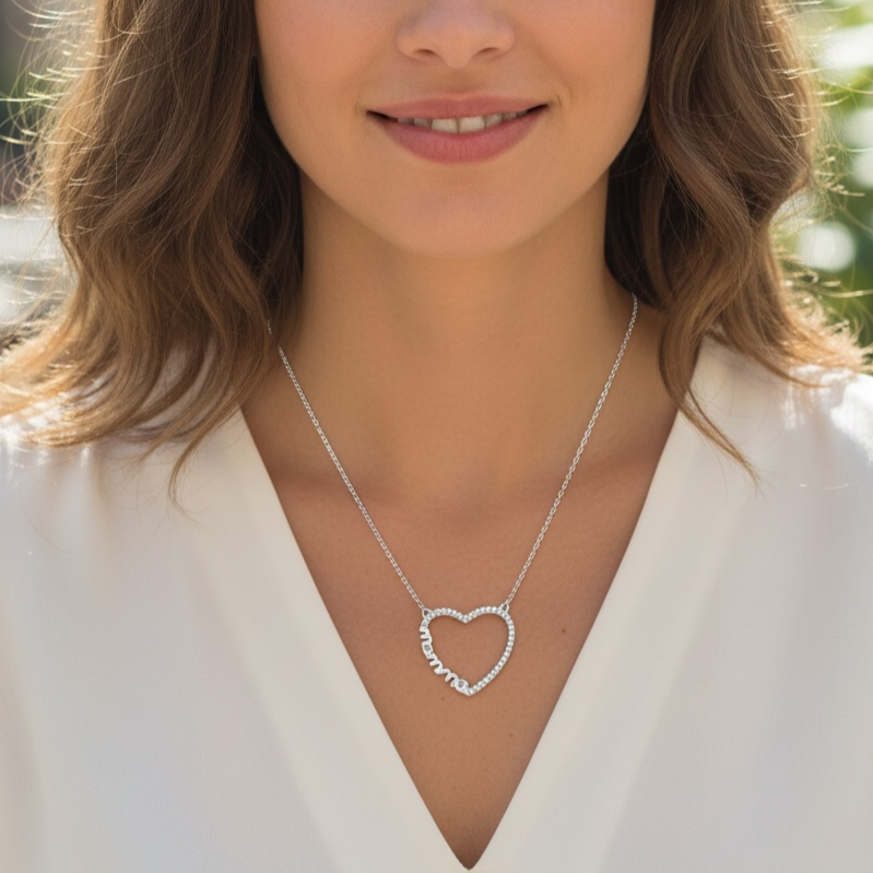 Collana da donna in argento 925 con cuore zirconato e scritta “mamma” laterale. Chiusura a molla regolabile