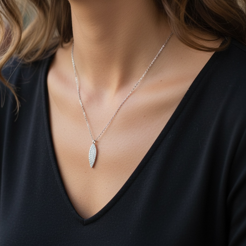 Collana da donna in argento 925 con forzatina regolabile tramite salisccendi con due pendenti forma di fogliolina zirconata.