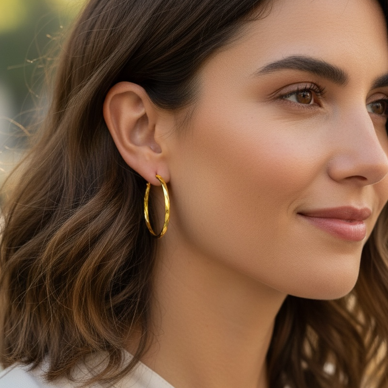 Orecchini in argento 925 a cerchio diamantato plain silver. Diamtro 27 mm