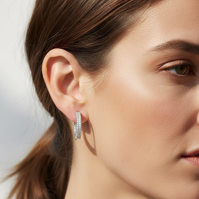 Orecchini da donna in argento 925 cerchietto a scattino da 12mm con doppio giro di zirconi